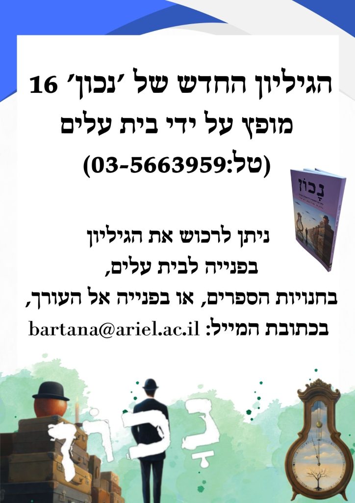 על העטיפה: "משא של זמן" — יצירה של עמוס גואטה, שהחלה כמחווה לצייר רנה מגריט, תוך שימוש במכחולי פוטושופ וכלי AI, והמשיכה לרעיונות חופשיים מהעולם הסוריאליסטי.
